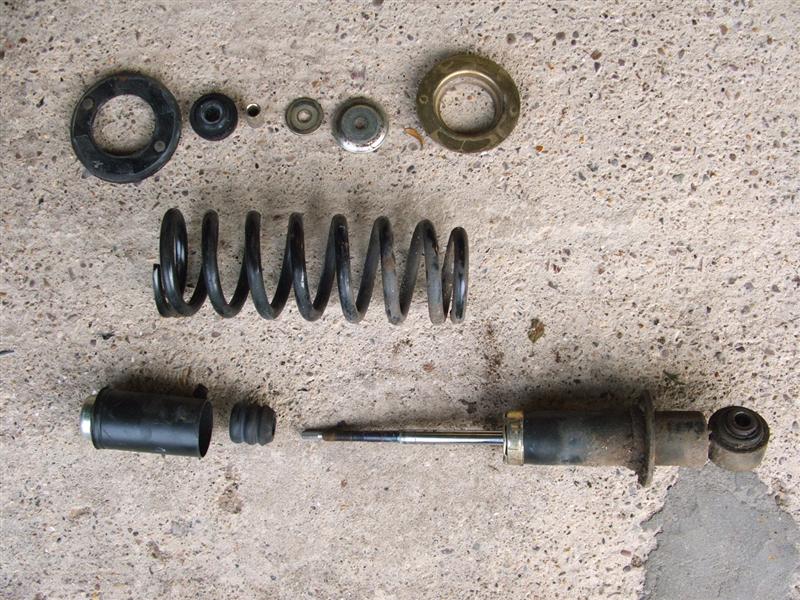 Stripping and assembly is pretty much as the rears, except there is no peg on the spring retainer to worry about, and make sure you fit coil spring compressors prior to undoing the spring retaining nut, they will also have to be used when assembling the new damper.